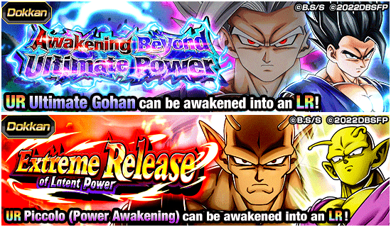 ¡Ya están disponibles dos nuevos eventos de Dokkan, "Despertar más allá del poder supremo" y "Liberación extrema del poder latente"! ¡Enfréntate al guerrero supremo que superó sus límites o al guerrero Namekian que se elevó a nuevas alturas en feroces batallas para obtener Medallas del Despertar! ¡Las Medallas del Despertar que se obtienen en estos eventos se pueden usar para Dokkan Awaken las cuatro nuevas unidades SSR disponibles en el Festival Dual Dokkan! ¡Además, la música especial de Dragon Ball Super: SUPER HERO se reproducirá durante la ronda 4 de ambos eventos Dokkan! ¡¡Sube el volumen y enfréntate a estas intensas batallas!!