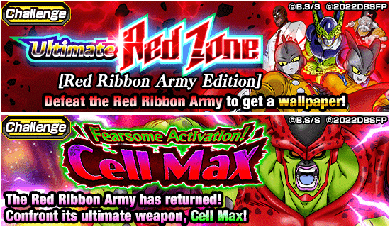 ¡Juega cada etapa hasta cinco veces al día en "Ultimate Red Zone [Red Ribbon Army Edition]", completa las nuevas misiones en "Fearsome Activation! Cell Max", ¡y más! ¡Consigue [Android con capa roja] Gamma 1 como bonificación de inicio de sesión especial la primera vez que inicies sesión durante la campaña y [Android con capa azul] Gamma 2 al completar misiones de crecimiento de colaboración de películas!