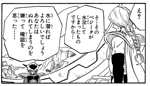 Para su disgusto, Frieza inmediatamente puede determinar que la razón de esto es porque Zarbon no quería mojarse. Aunque Zarbon sabía que su líder estaría furioso al escuchar que una misión había quedado sin terminar, no podía soportar arruinar su apariencia perfecta.