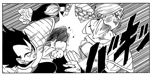 Mientras opera de forma independiente para localizar más Dragon Balls, es atacado por nada menos que Vegeta, quien usa el poder que ha obtenido para poner a Zarbon contra las cuerdas.