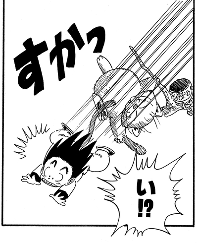 Gracias al aumento de fuerza obtenido a través de su intensa sesión de entrenamiento en la cima de la Karin Tower, Goku finalmente puede derrotar a Taopaipai .