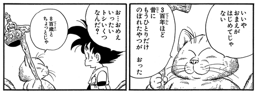 Karin tiene en realidad más de 800 años, y hace unos tres siglos, otro guerrero que buscaba la Super Holy Water subió para entrenar debajo de él: ¡ Kamesennin! A diferencia de Goku, que atrapó el Super Holy Water en cuestión de días, ¡Kamesennin tardó tres años completos en quitársela a Karin!