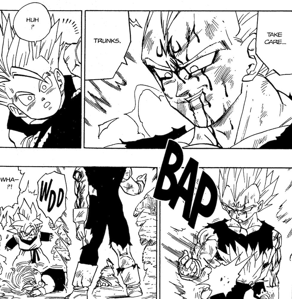 ・En el episodio 120 de Kai, cuando Vegeta abrazó a Trunks por primera vez y le dijo que se cuidara, luego lo noqueó. Era el epítome de un noble sacrificio.