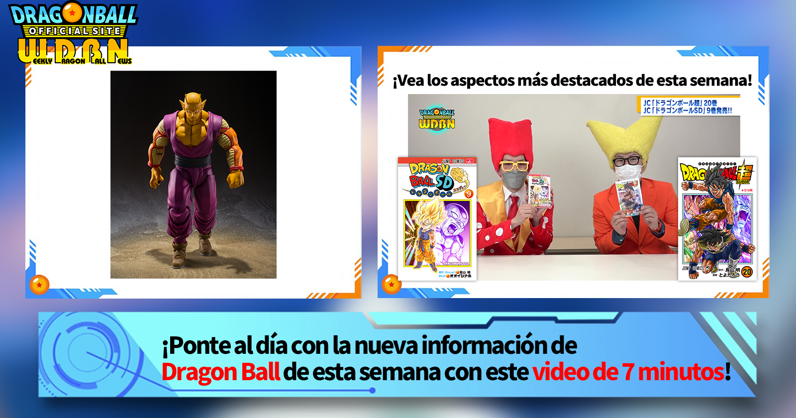 "Noticias semanales de Dragon Ball" es una serie de videos actualizada todos los lunes (JST) para brindarle las últimas noticias en el mundo de Dragon Ball. ¡Únase al editor de V Jump , Victory Uchida, mientras cubre toda la información más reciente publicada la semana anterior, así como nuevas actualizaciones como información de nuevos productos y noticias del sitio para la próxima semana!