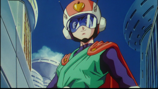 Ambos héroes usan su propio disfraz único, el primero con una capa rosa y un lindo casco con una marca de corazón.