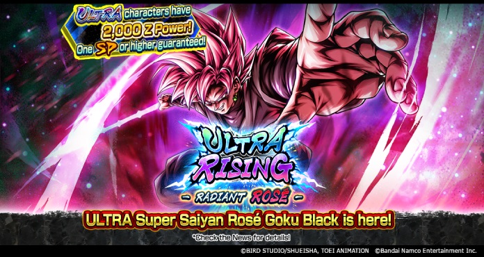 Esta campaña repleta ve el lanzamiento del nuevo ULTRA Super Saiyan Rosé Goku Black (DBL57-01U), la convocatoria "ULTRA RISING - RADIANT ROSE -" donde puedes reclutarlo, una convocatoria especial donde los jugadores pueden obtener hasta 100 gratis. pulls, nuevos eventos que se lanzan uno tras otro, ¡y más!
