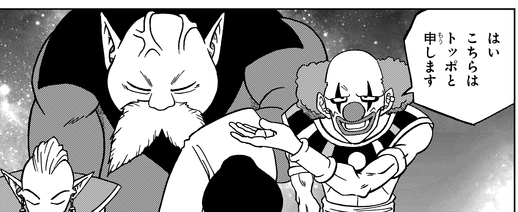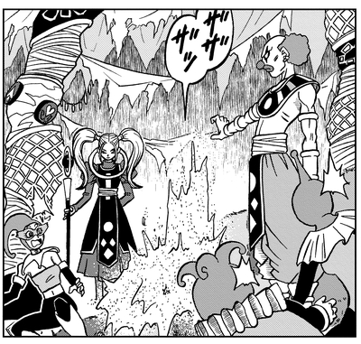 Incluso lleva a Toppo con él cuando el Great Priest llama a una reunión de emergencia de los Dioses de la Destruction.