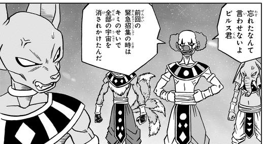 Es allí donde desafía a Beerus, afirmando que el God of Destruction del Universo 7 fue la razón por la que todos los universos casi fueron destruidos en su última reunión piadosa, lo que vuelve a los otros dioses en contra de Beerus también.