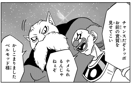 Bemod está pensando en retirarse de su puesto como God of Destruction y está entrenando al guerrero Toppo para que lo sustituya.
