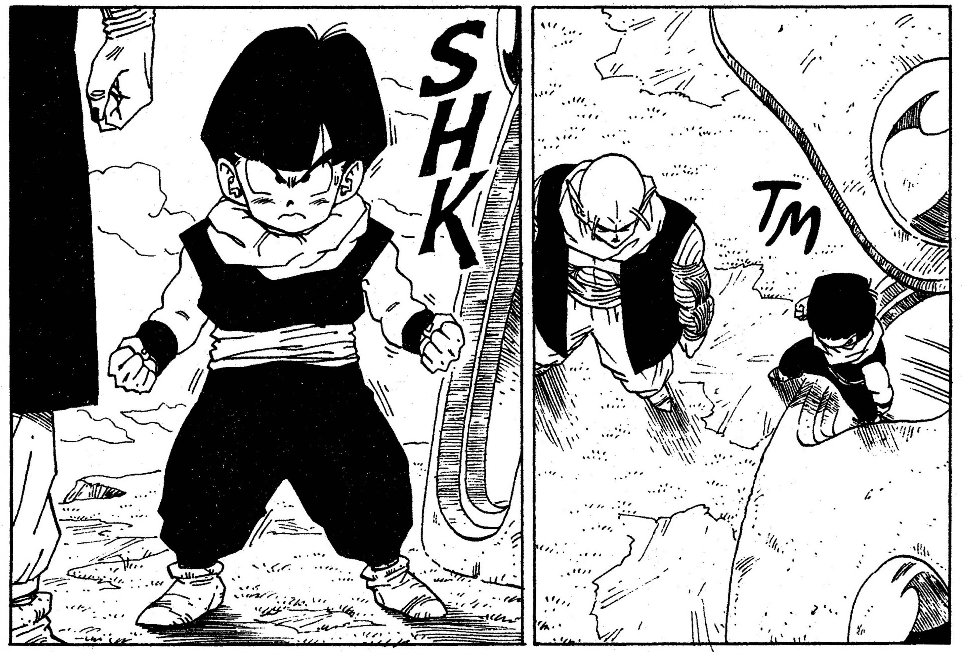 Nibú: Ah, sí, seguro. La escena cuando Goku abrió un agujero en el pecho del Gran Rey Demonio Piccolo. La parte en la que dice: "¡¡¡Tengo que apostar todo lo que tengo en este puño!!!" sigue siendo mi cita favorita del manga.