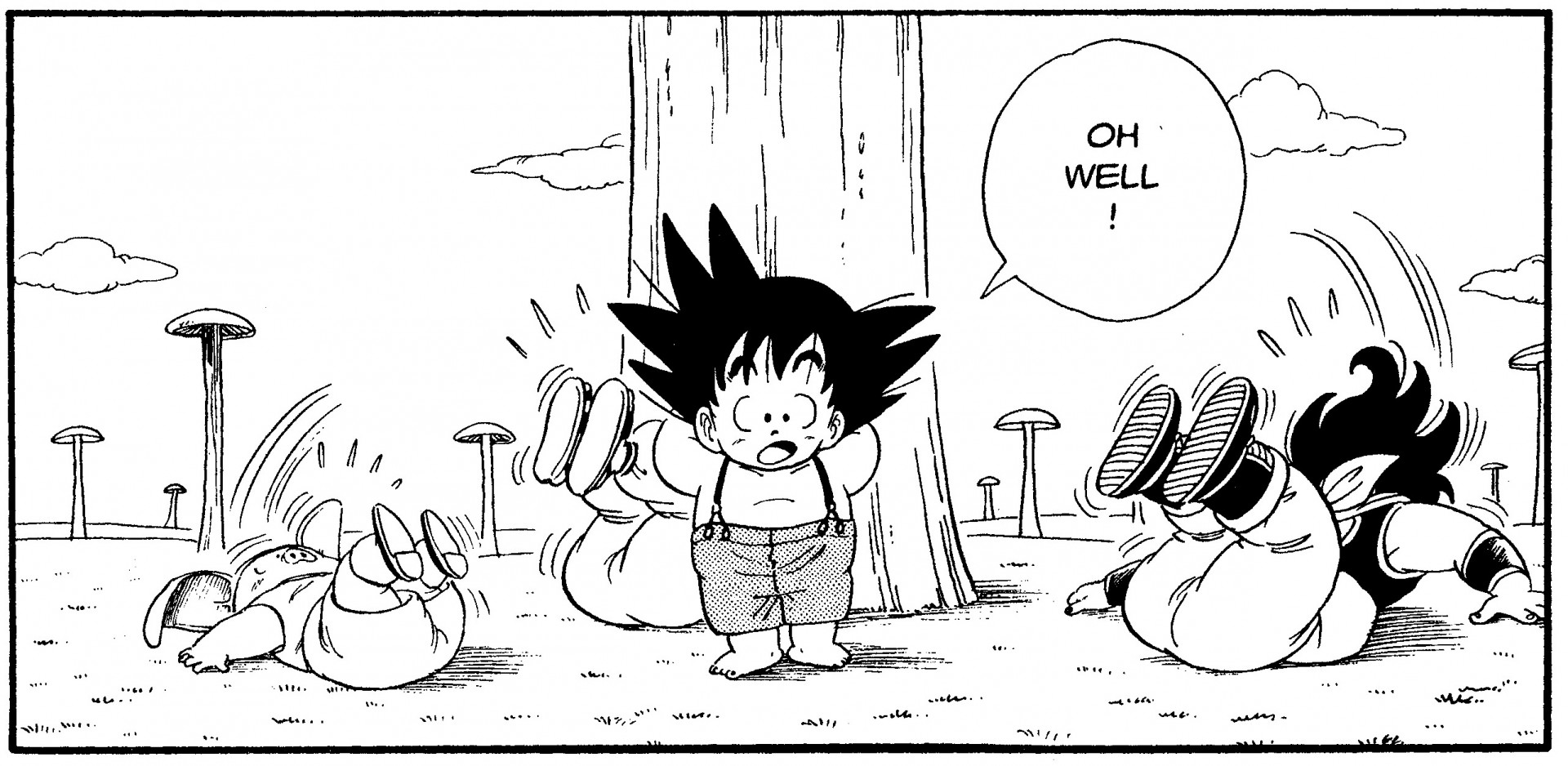 Nibú: La filosofía "Oh, bueno" de Goku, seguro. Solía leer eso como cualquier otra línea en el manga, pero cuando lo volví a leer como adulto, sentí que era mucho más profundo. Si puedes pensar, "Oh, bueno", cuando sucede algo malo y seguir adelante, te hace la vida mucho más fácil. Es por eso que estoy tratando de vivir la vida de "Oh, bueno" ahora.