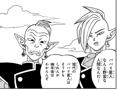 Con este fin, Zamasu y Gowasu observan una especie humanoide que ha evolucionado recientemente en el Planet Babari. Al ver cómo los bárbaros de ese mundo usan la violencia para gobernar a los demás, Zamasu declara que los habitantes del planeta deben ser eliminados de inmediato. A esto, su mentor Gowasu le advierte que espere y observe lo que sucede allí durante los próximos 1.000 años.