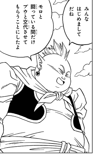 Más tarde, él y la reencarnación de Buu, Uub, enviaron a Goku su poder divino cuando el Saiyajin se preparaba para desatar el golpe final decisivo para derrotar a Moro.