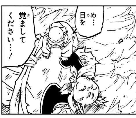 En su momento de necesidad, un joven Namekian llamado Esca acude al rescate y cura al Kai.