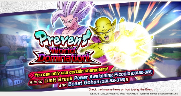 Cada etapa de este evento solo puede ser desafiada por personajes específicos, ¡así que intenta eliminarlos todos para limitar el descanso de Power Awakening Piccolo (DBL60-02S) y Beast Gohan (DBL52-01S)!