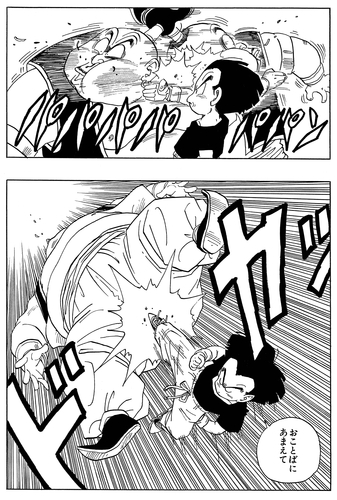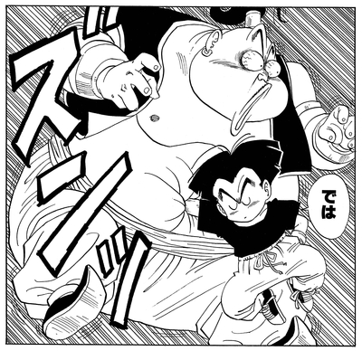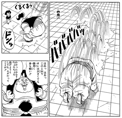 Decidido a mostrar lo duro que es, Punta continúa subestimando a su oponente ofreciéndole un tiro libre y diciendo: "Dame un golpe. ¡Vamos, no seas tímido!". Sin embargo, esto termina siendo contraproducente, ya que Krillin acepta la oferta de Punta y le da un golpe devastador en la cintura.