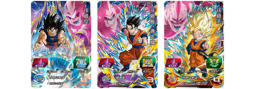 ¡La línea de cartas UR incluye cartas que recrean la lucha contra Majin Buu junto con personajes del anime promocional! ¡Entre ellos, las ilustraciones especiales de Majin Buu: Evil y Gohan: Adult están diseñadas para que puedas crear una increíble escena combinada cuando los colocas uno al lado del otro! Finalmente, del anime promocional vienen las tarjetas UR del Rey Oscuro Demigra más tres generaciones de Goku y su familia, ¡y estos guerreros Saiyan están listos para enfrentarse al Rey Oscuro!