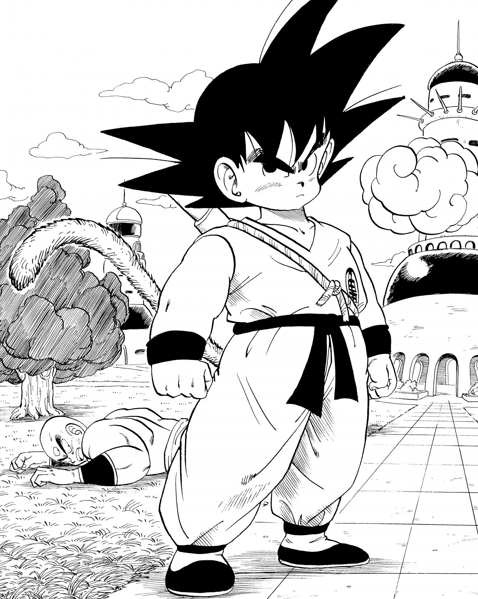 Goku entró en Central City desde la Karin Tower en la cima de Kintoun para derribar al Great Demon King Piccolo.