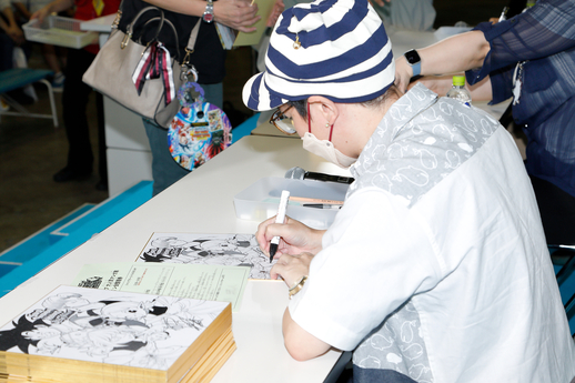 Mientras tanto, en Jump Carnival Studio estaban organizando un evento en el que podías obtener un autógrafo de los creadores de algunas de las exitosas series de manga de Saikyo Jump. Incluso Yoshitaka Nagayama, el artista de Super Dragon Ball Heroes: Ultra God Mission de Saikyo Jump, tuvo una sesión de autógrafos.