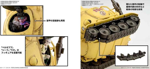 Este tanque viene con figuras a escala de Beelzebub, Thief y Rao. ¡Encajan perfectamente dentro de la cabina y vienen predispuestos para poder colocarlos dentro del tanque a través de la escotilla!