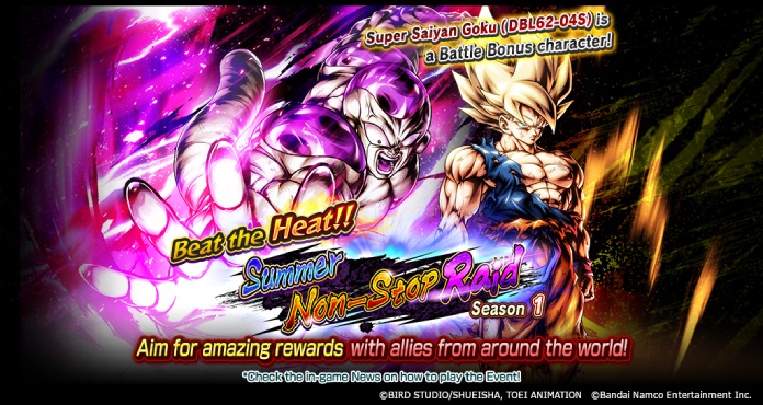¡Beat al calor no con uno sino con dos eventos Summer Non-Stop Raid! ¡Podrás conseguir un total de 1400 cristales crono en las dos temporadas de esta incursión! ¡Derrota al jefe de incursión de la temporada 1, Final Form de Frieza: potencia total, para tener la oportunidad de obtener medallas de incursión sin parar de verano n.° 1, poder Multi-Z y más!