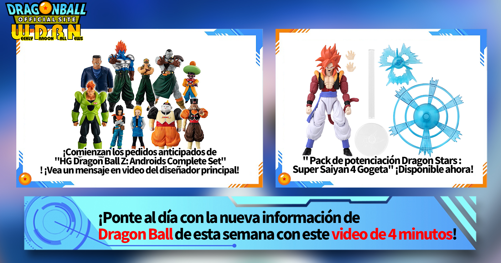 "Noticias semanales de Dragon Ball" es una serie de videos que se actualiza todos los lunes (JST) para brindarte las últimas noticias en el mundo de Dragon Ball. Únase al editor de V Jump, Victory Uchida, mientras cubre toda la información más reciente publicada la semana anterior, así como nuevas actualizaciones como información de nuevos productos y noticias del sitio para la próxima semana.