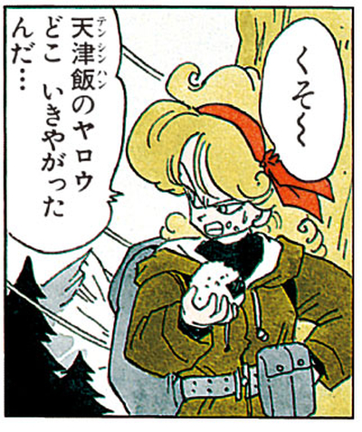 Y aunque no aparece en la historia principal, también se la puede ver buscando furiosamente a Tenshinhan en una pieza especial realizada para "Put the Old Year Behind You! Jump Characters Face Off at Short GAG Land" de Weekly Shonen Jump.