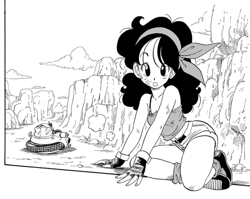 Ella se siente abrumada por la emoción durante la pelea entre Goku y Tenshinhan, lo que la hace exclamar: "¡¡Me he enamorado de tu salvajismo!!" al ahora reformado luchador Crane School Dojo .