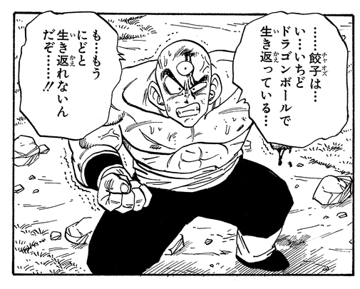 Para vengar a su amigo caído, Tenshinhan decide sacrificar su propia vida poniendo toda la energía que le queda en un Kikoho final que dispara a Nappa con todas sus fuerzas, con la esperanza de acabar con él de una vez por todas. Sin embargo, esto también resulta ineficaz y el orgulloso guerrero pronto cae...