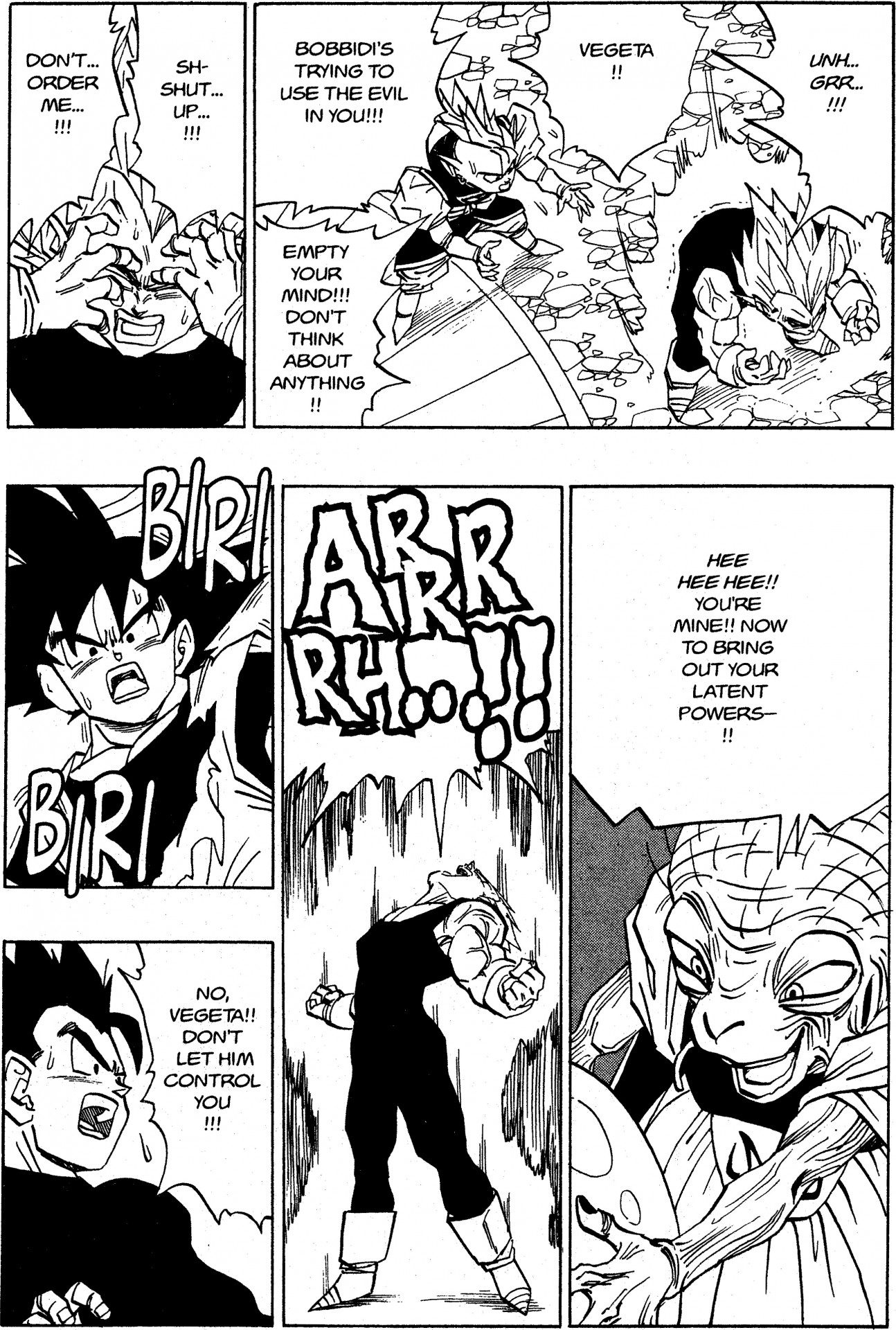 —Te refieres a la escena en la que Vegeta permite que Babidi le lave el cerebro para derrotar a Goku. Vegeta le declara a su rival: "¡¡¡Quería ser como solía ser!!! ¡¡¡Quería ser el Saiyajin despiadado y de sangre fría!! ¡¡¡Para pelear contigo, sin importarme nada más!!! " Entonces, si bien se enorgullecía de criar a su hijo, también sufría porque sentía que estaba perdiendo su deseo de fuerza, que es un instinto que poseen todos los Saiyajin.