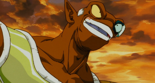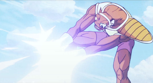 Casi recibe un golpe limpio en la cara por la explosión de energía de Goku, pero lo evade por poco retrayendo su cabeza dentro de su cuerpo.