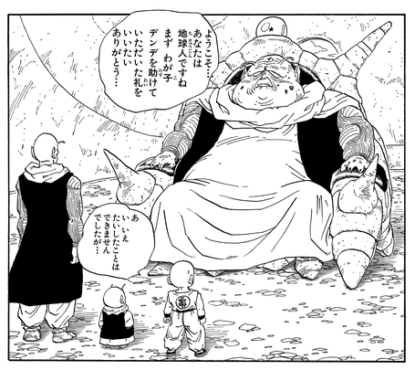 Cuando Dende lleva a Krillin a conocer a Saichoro, es Nail quien los presenta.