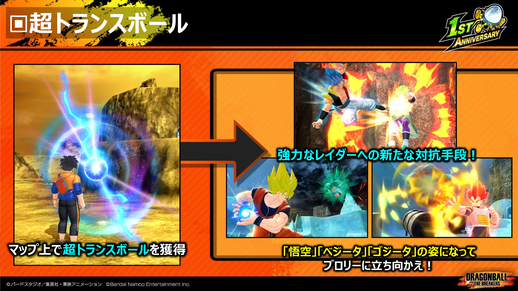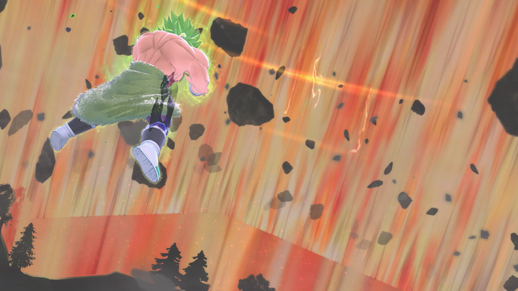 Kotani: ¡Hemos introducido un nuevo truco, la Super Transsphere! Este elemento especial solo aparecerá cuando el Raider sea Broly. Cuando se activa, puedes transformarte en Goku, Vegeta o Gogeta y luchar Broly como en la película.