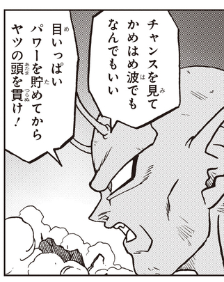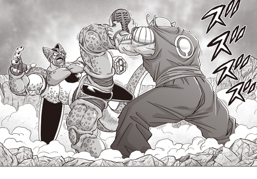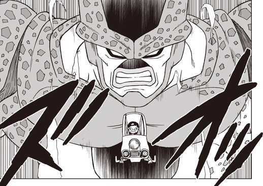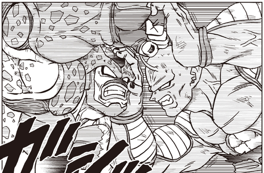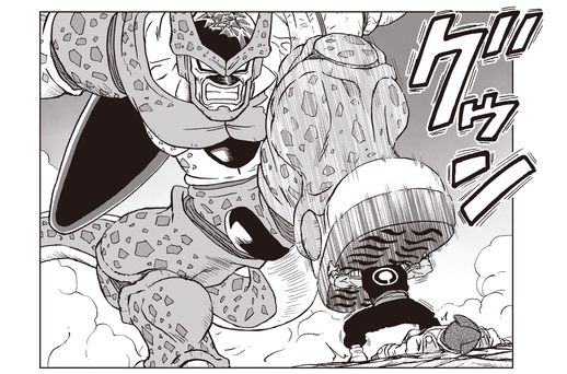 ¡Su plan es contener a Cell Max usando su propio cuerpo gigante para que Gohan pueda golpear la cabeza de su enemigo con un poderoso golpe!