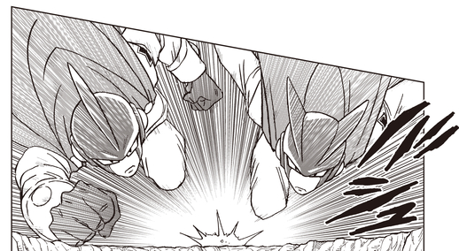 Aunque el ataque de Gamma 2 fue terriblemente poderoso, Cell Max logra bloquearlo con su brazo en el último minuto y evadir la derrota.