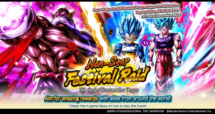 Tendrás la oportunidad de obtener Medallas del Festival 2023 cuando derrotes al Raid Boss, así que incluye personajes de bonificación de batalla y personajes con habilidades adicionales en tu grupo y enfréntate al God of Destruction Toppo.