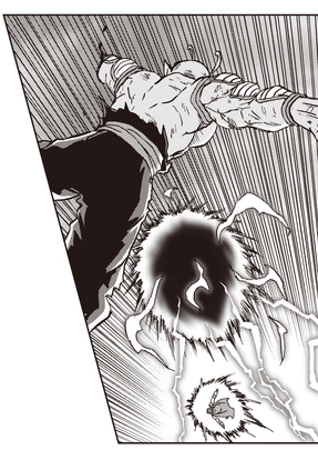 Como si eso no fuera suficientemente malo, incluso recibe una devastadora explosión de energía Kidan de frente...