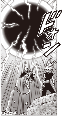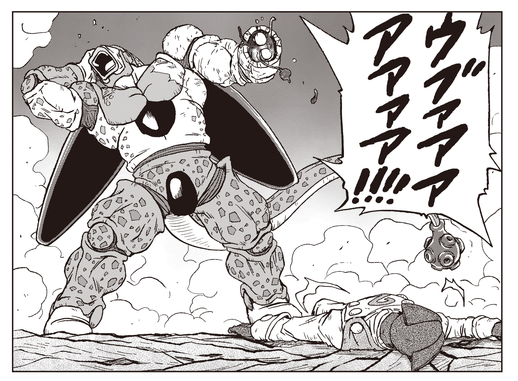 Sin embargo, a pesar de perder su brazo izquierdo defendiéndose del ataque, Cell Max sigue furioso sin cesar.