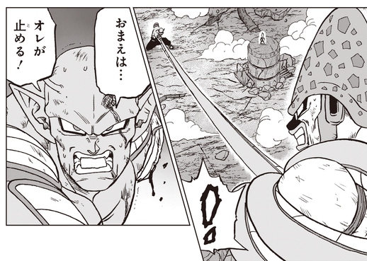 Para crear una oportunidad para que su alumno asesta su golpe decisivo, ¡ Piccolo se enfrenta a Cell Max de frente!