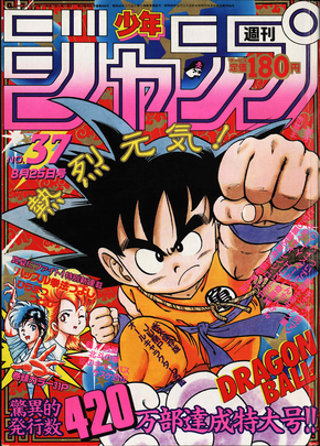 ¡Goku también prestó su energía desbordante a Weekly Shonen Jump en esta portada mientras la revista celebraba los 4,2 millones de copias vendidas! ¡Camino a seguir!