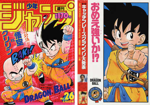 Goku y Krillin se enfrentaron por primera vez en el número 26, y también se pudo ver a los dos rivales peleando en la portada. ¡También se llevó a cabo el 4to Gran Premio de Catchphrase, y Dragon Ball logró lograr una impresionante victoria consecutiva aquí!