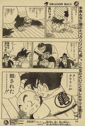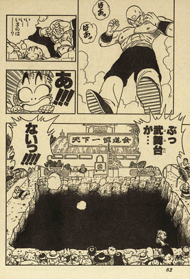 ¡Todos los participantes del torneo estaban listos para un enfrentamiento, y la página de apertura en color mostraba a Krillin y Chaoz en un duelo Kamehameha VS Dodonpa !