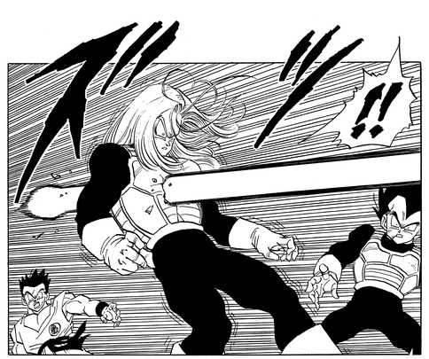 Android 20, que estaba en un aprieto cuando Vegeta eliminó a Android 19, activa a los Androides 17 y 18. Trunks se apresura a ayudar a Vegeta, quien ha sido acorralado por Android 18, pero luego Android 17 cambia las tornas.