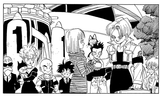Trunks derrota fácilmente a Frieza y su padre, quienes habían venido a la Tierra para vengarse de Goku. Una vez que Goku regresa del Planet Namek, Trunks le dice que en tres años aparecerán los androides creados por el Dr. Gero, ex miembro del Red Ribbon Army, que matarán a todos los guerreros de la Tierra y que Goku sucumbirá a una enfermedad. .