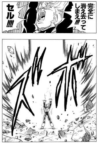 Acorralado por Gohan, Cell se autodestruye. Sin embargo, es revivido de su núcleo restante y mata a Trunks con un ataque repentino y poderoso.