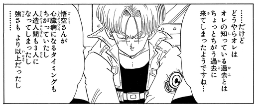 Pasan tres años y los androides 19 y 20 atacan South City. Una vez más, Trunks regresa del futuro, pero los androides que atacaron South City no son los androides que Trunks conoce. Un pequeño cambio en la historia puede causar muchos futuros posibles, por lo que parece que el pasado al que llegó Trunks no era el pasado que conocía.