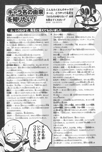 Panchy (una continuación de la tradición familiar de nombres basados en ropa interior) no recibió un nombre en el manga y siempre se la llamó simplemente la madre de Bulma. En una entrevista, Akira Toriyama dijo en broma: "Si la hubiera nombrado en ese momento, probablemente habría sido 'Panchy'".