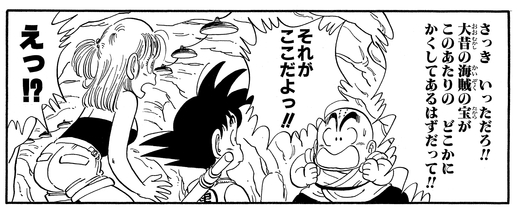 Krillin parece conocer una leyenda sobre algún tesoro pirata que estuvo escondido hace mucho tiempo en la zona del océano donde terminan nuestros héroes. Parece que dicho tesoro estaba guardado en el escondite pirata con el que tropezaron, y que Pirate Robot lo había estado custodiando desde la antigüedad.