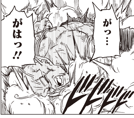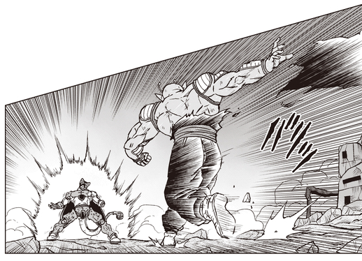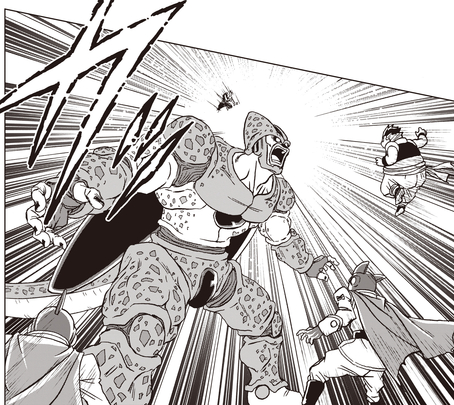 Gamma 2 pone todo su poder en un solo golpe devastador y logra quitarle uno de los brazos al monstruo. Sin embargo, a pesar de perder su brazo izquierdo defendiéndose del ataque, Cell Max sigue furioso sin cesar.