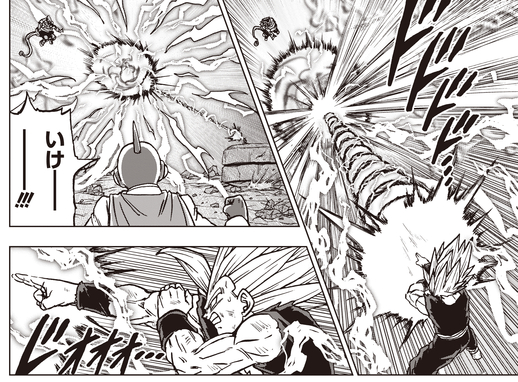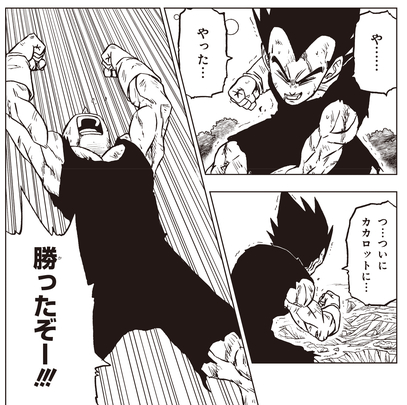 Mientras tanto, en Beerus's Planet, la pelea con todas las transformaciones prohibidas entre Goku y Vegeta llega a una conclusión sorprendente: ¡ Vegeta sale victorioso!